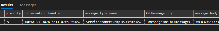 As you can see, you need to convert the message_body to XML or a string data type for it to make any sense. When you specify a TOP (X) in your RECEIVE statement, you will get the top X messages in the order they arrived (oldest first). You can also filter RECEIVE statements, but only on conversation_handle or conversation_group_id.